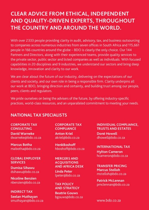 nbenzien@bdo.co.za TAX POLICY pmclennan@bdo.co.za