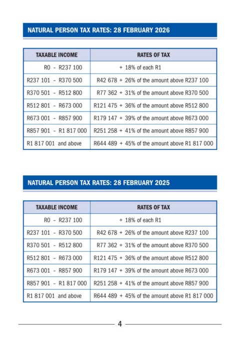 NATURAL PERSON TAX RATES: 28 FEBRUARY 2026